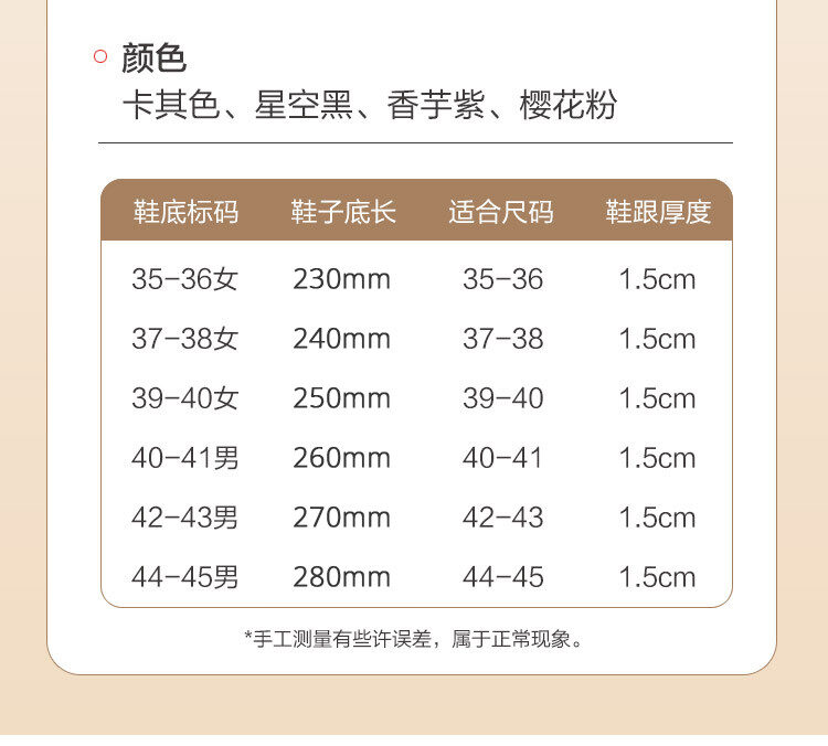 | Size | 35/36(230), 37/38(240), 39/40(250), 40/41(260), 42/43(270), 44/45(280) |